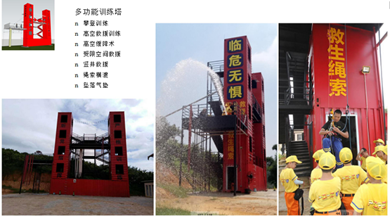 多功能训练塔:能亲身体验高空缓降,克服可能存在的心里障碍,并且了解高空缓降器的实际操作